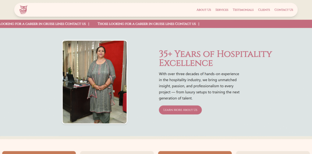 Website designed using Next.js for a hospitality consultant. From requirements gathering, hosting, deployment and DNS, all orchestrated by me.